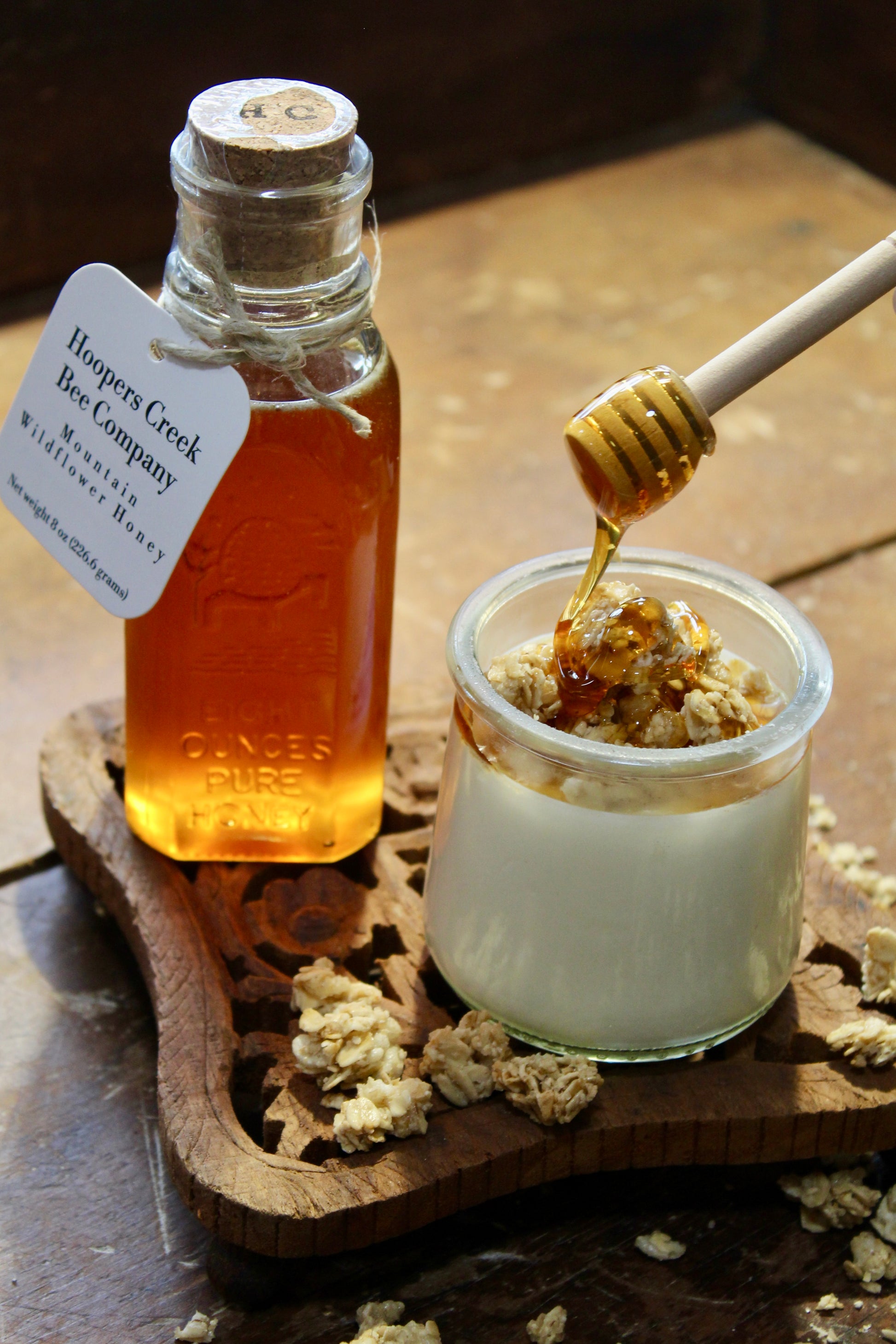 Here in the mountains of western North Carolina, we’re fortunate to have an abundance of nectar sources. Our mountain wildflower mix featuring tulip poplar trees, black locust trees, and blackberry bushes provides a strong main nectar flow from May through June. The result is a honey with a wonderful taste and aroma, perfect for tea, coffee, baking, or simply enjoying by the spoonful.